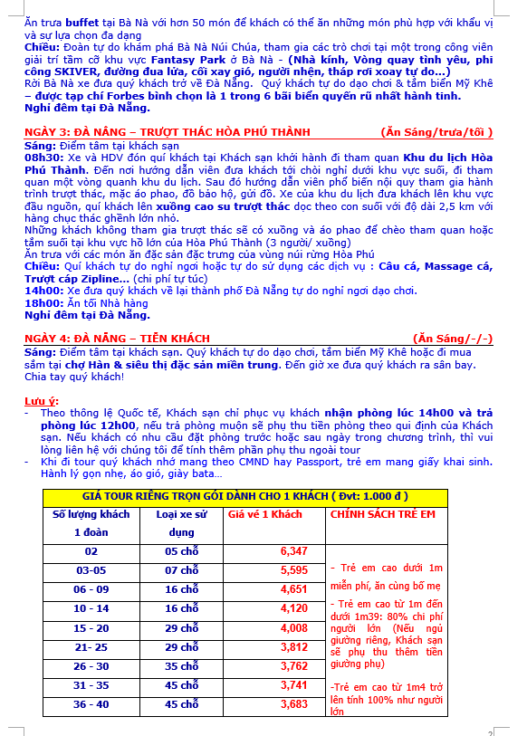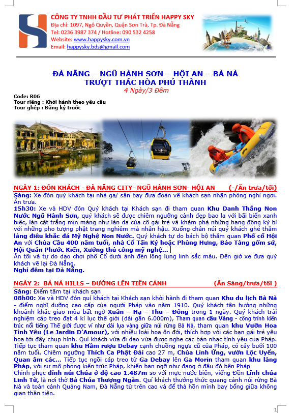ĐÀ NẴNG – NGŨ HÀNH SƠN – HỘI AN – BÀ NÀ – TRƯỢT THÁC HÒA PHÚ THÀNH 4N/3D