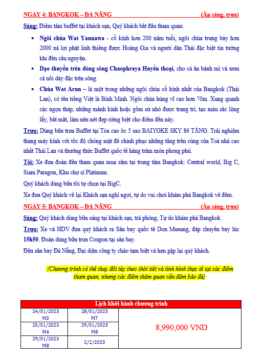 DU LỊCH THÁI LAN GHÉP ĐOÀN