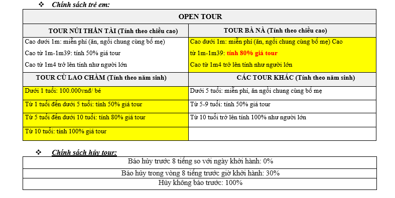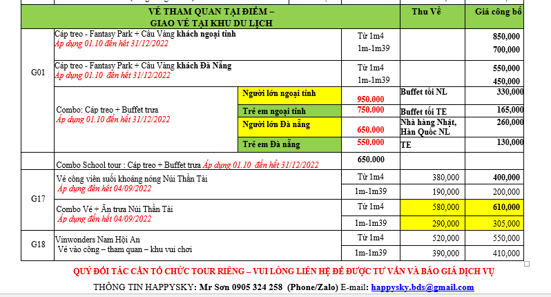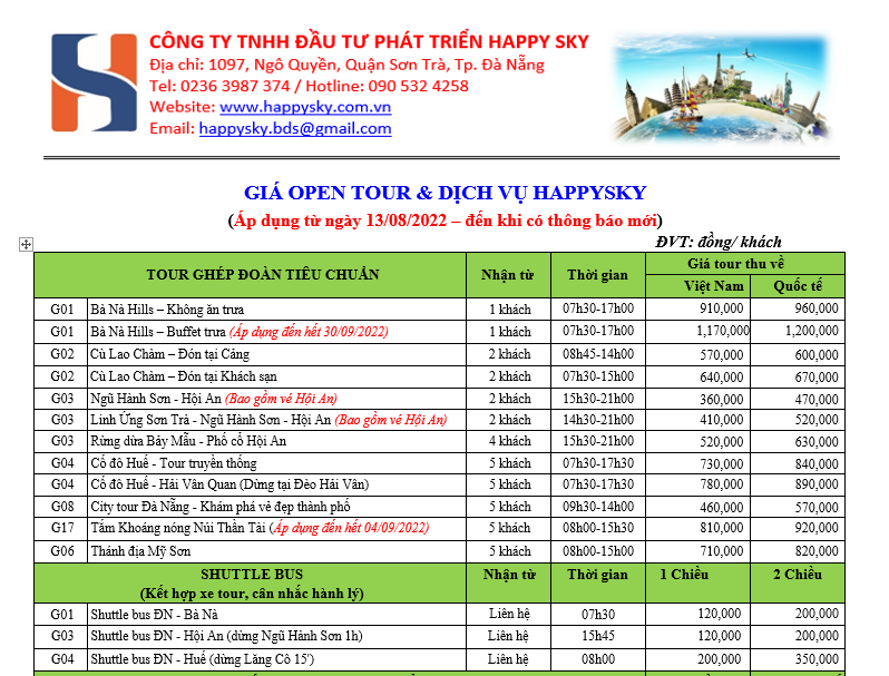 GIÁ OPEN TOUR & DỊCH VỤ HAPPYSKY